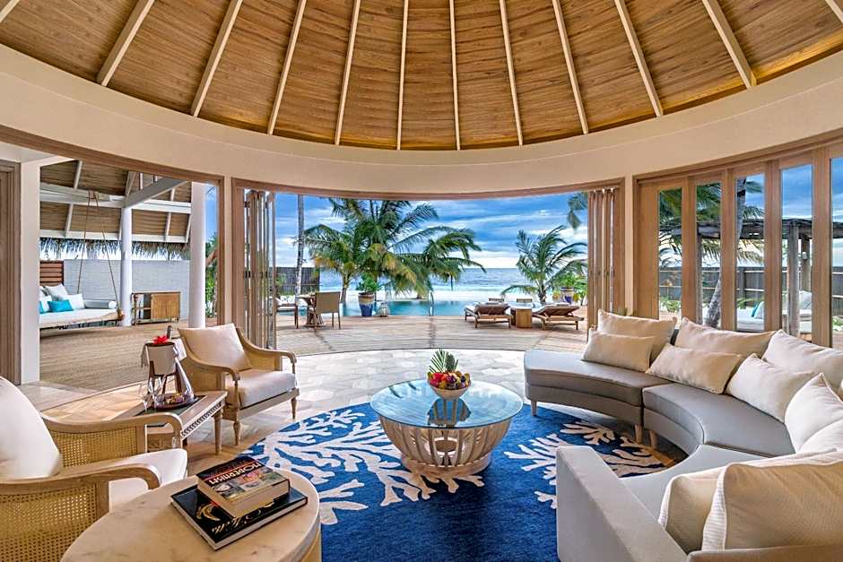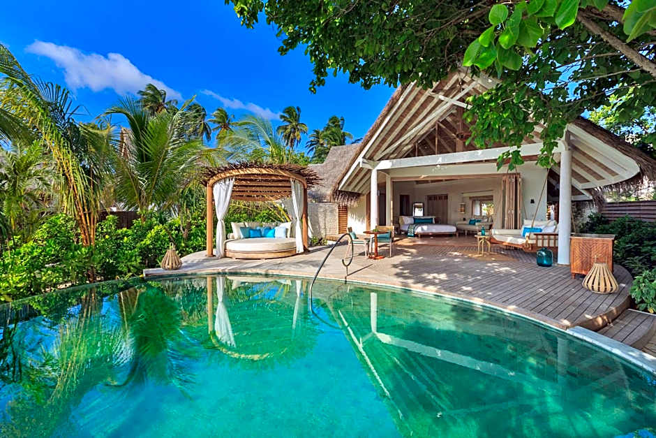 Set directly on the beach, these villas have ocean view and open up to the sundeck, a private pool, Maldivian-style swing chair and sun loungers. The deck has a shower. The air-conditioned bathroom offers both an open air outdoor garden shower and indoor shower as well as a bathtub.